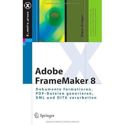Enjoy you are read it. Adobe FrameMaker 8: Dokumente Formatieren, PDF-Dateien Generieren, XML Und DITA Verarbeiten (X.media.press) (German Edition) By Kr Ger, Klaus (2008) Gebundene Ausgabe PDF ePub Kindle book, let's get read or download it because available in formats PDF, Kindle, ePub, iPhone and Mobi also.